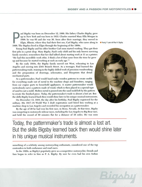 The Story of Paul A. Bigsby tells how Bigsby influenced Fender and Gibson, as well as a number of other guitar manufacturers, in building techniques and design. This deluxe illustrated coffee table book contains over 300 color and black & white photos. Many of these have not previously been published, and over 50 are actual Bigsby instrument photos taken by fine arts photographer Greg Morgan. The book also comes with an audio CD of Paul Bigsby, recorded in the late 1950s, telling stories of his business.
