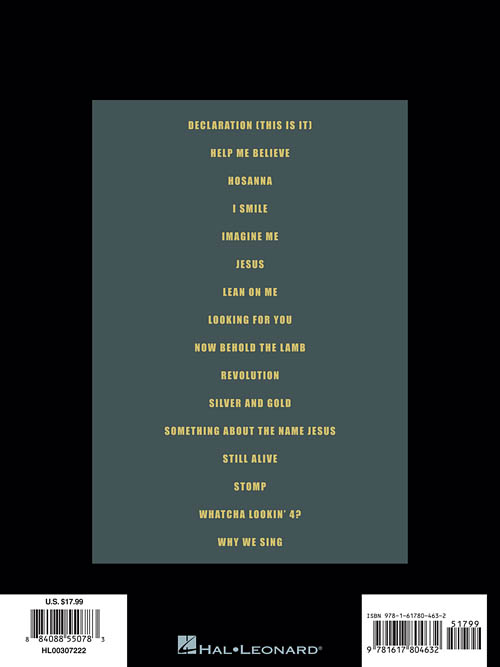 Transcrições para Voz / Piano / Violão; incluindo: Declaration (This Is It) • Help Me Believe • I Smile • Lean on Me • Looking for You • Jesus • Now Behold the Lamb • Stomp • Whatcha Lookin' 4? • Why We Sing • e mais!!!