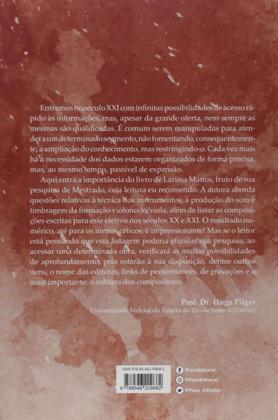 Entramos no século XXI com infinitas possibilidades de acesso rápido às informações, mas, apesar da grande oferta, nem sempre as mesmas são qualificadas. É comum serem manipuladas para atender a um determinado segmento, não fomentando, consequentemente, a ampliação do conhecimento, mas restringindo-o. Cada vez mais há a necessidade dos dados estarem organizados de forma precisa, mas, ao mesmo tempo, passível de expansão. Aqui entra a importância do livro de Larissa Mattos, fruto de sua pesquisa de Mestrado, cuja leitura eu recomendo. A autora aborda questões relativas à técnica dos instrumentos, à produção do som e timbragem da formação violoncelo/viola, além de listar as composições escritas para este efetivo nos séculos XX e XXI. O resultado numérico, até para os menos céticos, é impressionante! Mas se o leitor está pensando que esta listagem poderia afunilar sua pesquisa, ao acessar uma determinada obra, verificará as muitas possibilidades de aprofundamento, pois estarão à sua disposição, dentre outros itens, o nome das editoras, links de performances, de gravações e o mais importante: o contato dos compositores. (Prof. Dr. Hugo Pilger, Universidade Federal do Estado do Rio de Janeiro (Unirio)), Obstáculos para a música de concerto dos séculos XX e XXI: difusão e acessibilidade e o comodismo da repetição; 2. Técnicas de produção de som para o equilíbrio sonoro e combinação timbrística no duo viola e violoncelo: considerações de oito autores; 3. Controle do timbre em duos para viola e violoncelo: similaridade, caráter, sobreposição de vozes e continuidade de linhas melódicas; 4. Duos para viola e violoncelo: catálogo de obras dos séculos XX e XXI de nível intermediário/avançado.
