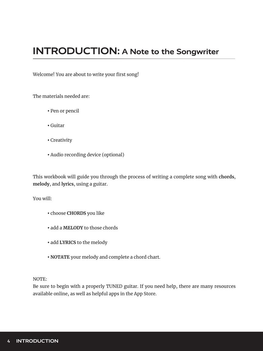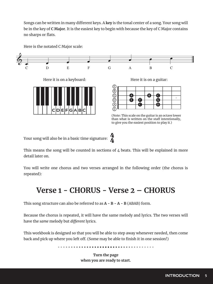 Designed for budding songwriters of any age, this workbook requires only a minimal knowledge of the guitar. Author Allison James designed the book to be used with or without the help of a teacher, and guides the student carefully and simply through the process of writing a complete song with chords, melody, and lyrics. Also available: How to Write a Song on the Piano.