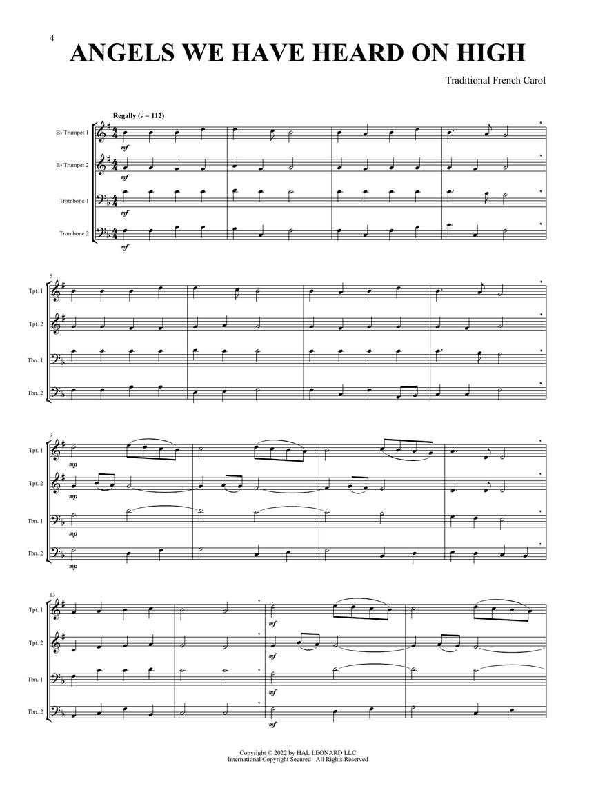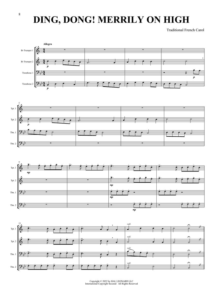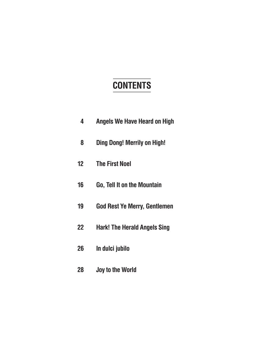 This collection features eight arrangements in that distinctive Canadian Brass style for two B-flat trumpets and two trombones. Contents include: Angels We Have Heard on High • Ding Dong! Merrily on High • The First Noel • Go, Tell it on the Mountain • God Rest Ye Merry, Gentlemen • Hark! The Herald Angels Sing • In dulce jubilo • Joy to the World.