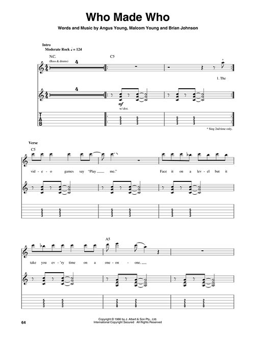 A série Guitar Play-Along vai ajudá-lo a tocar as suas canções favoritas de forma rápida e fácil. Basta seguir a partitura ou a tablatura, ouvir o áudio para sentir como soa o som da guitarra e depois tocar junto utilizando a faixa de play-back. As faixas de áudio estão disponíveis online, juntamente com um player digital (Playback+) que permite alterar o andamento sem alterar o tom, escolher trechos específicos para tocar, além de balanço direita/esquerda. A melodia e a letra também estão escritas caso você queira cantar. Incluindo: Dirty Deeds Done Dirt Cheap • For Those About to Rock (We Salute You) • It's a Long Way to the Top (If You Wanna Rock 'N' Roll) • Let There Be Rock • Moneytalks • Thunderstruck • T.N.T. • Who Made Who.