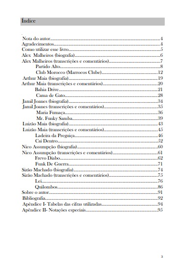 Esse livro é o resultado de um projeto iniciado em 2004, quando fui convidado por Arthur Maia a ministrar aulas no 1° Niterói Musifest Instrumental em maio daquele ano. Ao elaborar uma apostila para os alunos, verifiquei a necessidade de colocar algumas transcrições de grandes baixistas, buscando apresentar uma diversidade de gêneros musicais brasileiros. Mais tarde, já no ano de 2020, buscando dar um maior embasamento á minha pesquisa, ingressei no curso de mestrado no PROEMUS da UNIRIO sob orientação do Prof. Dr. Afonso Cláudio de Figueiredo. A partir de então, realizei um trabalho intenso de pesquisa com a ajuda de CDs, sites de m˙sica brasileira na Internet como o da pesquisadora Maria Luiza Kfouri e também opiniões importantes de amigos músicos.