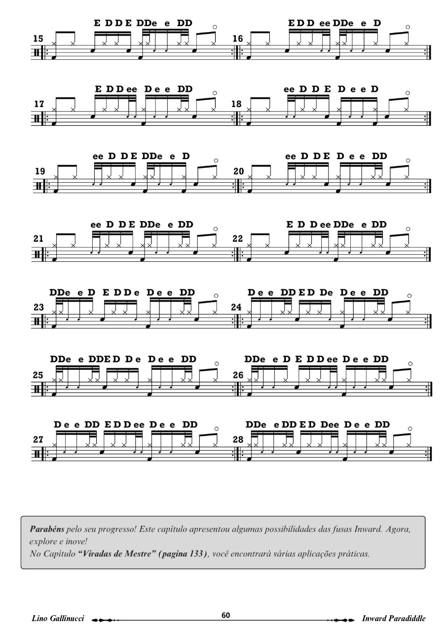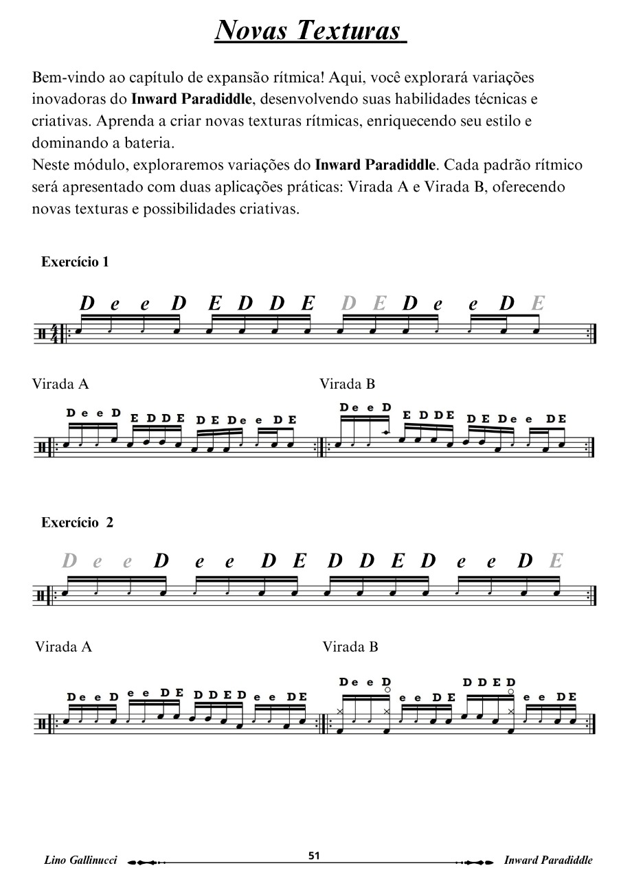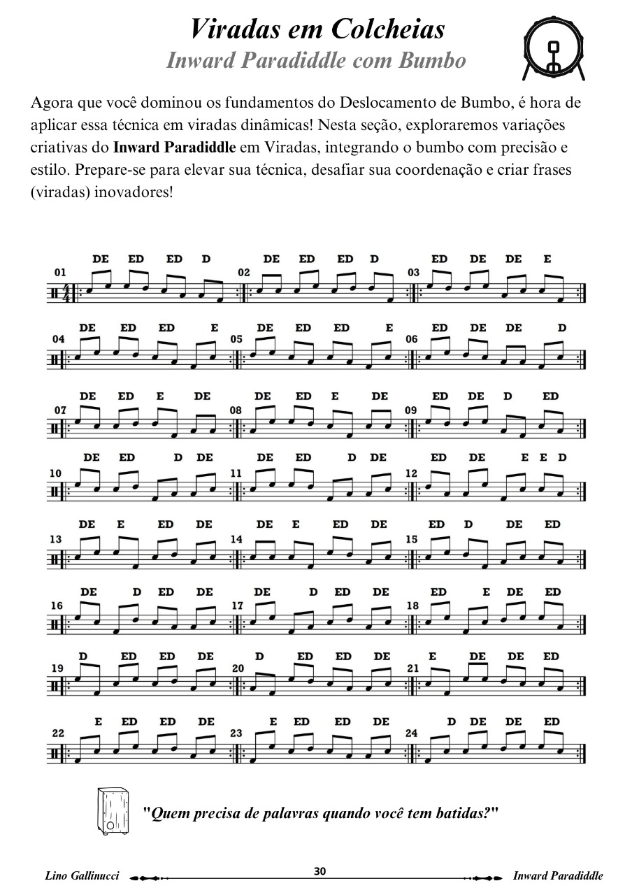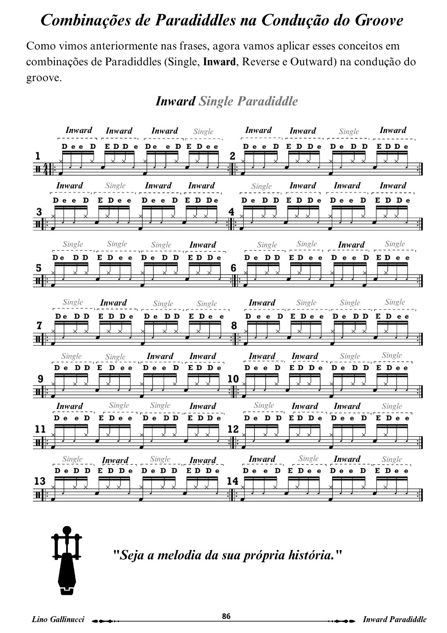 Este método foi desenvolvido com o objetivo de proporcionar ao baterista um aprendizado prático e musical. A ideia é ir além dos exercícios técnicos e explorar como o Inward Paradiddle pode ser utilizado em contextos musicais reais.