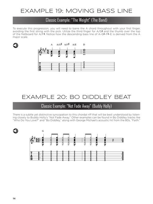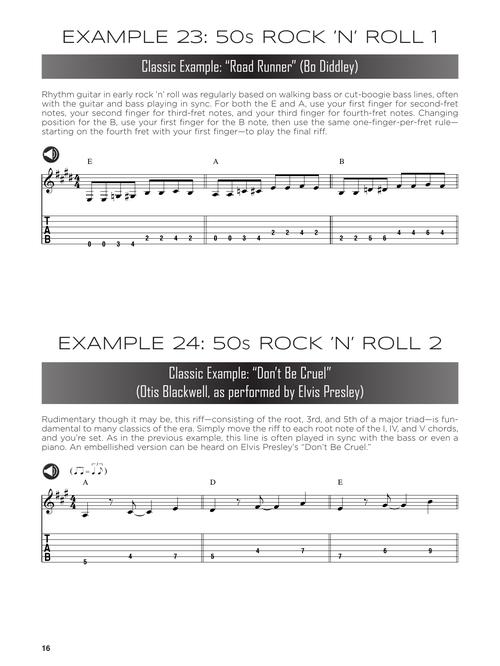 If you're new to guitar, you're probably ready to expand your rhythm skills beyond strumming simple open chords. First 50 Riffs & Patterns You Should Play on Rhythm Guitar will help you do just that, with dozens of commonly used rhythm guitar examples in blues, rock, jazz, and country styles. Each riff or pattern is shown in standard notation and tab, with helpful notes on technique, theory, and listening recommendations so you can hear how these ideas are used in real songs. You'll cover triads, seventh and ninth chords, chord inversions, boogie woogie and bass line patterns, power chord riffs, open-position blues riffs, jazz progressions, and more. Includes online access to audio demonstrations of every example in the book!