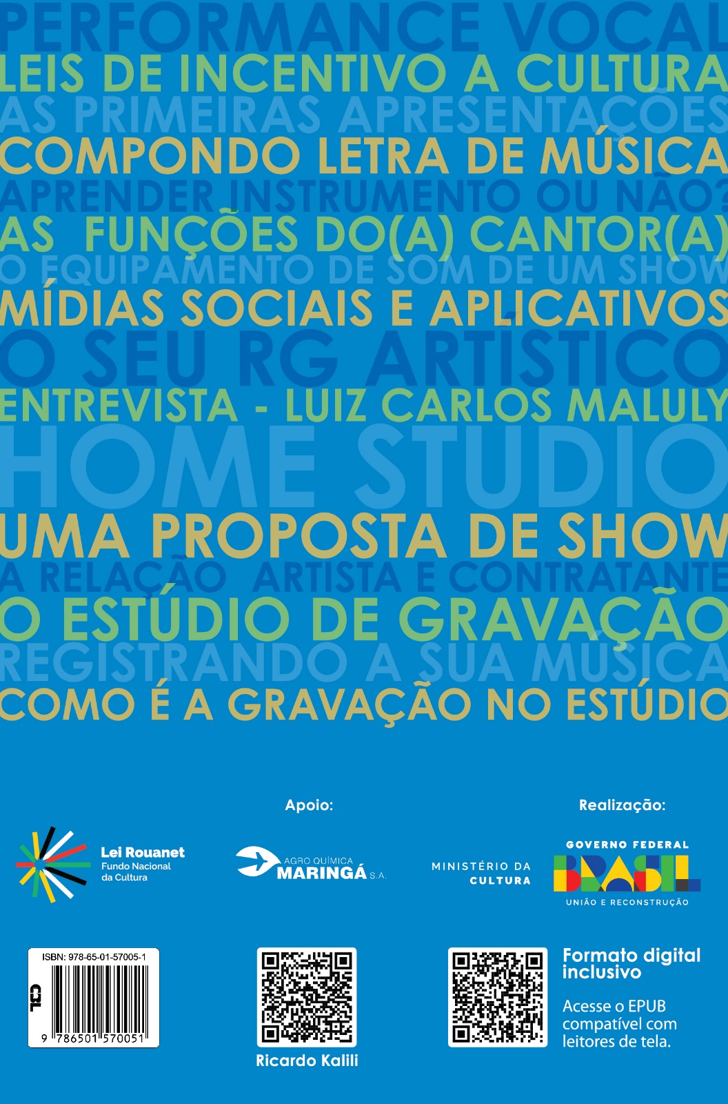 Como cantor, em paralelo a sua careira de professor e autor , Ricardo Kalili tem uma longa vivência como cantor e compositor : gravou 5 Cds autorais e fez centenas de apresentações com banda. Youtube.com/ricardokalili.