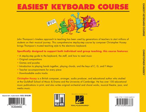 A new method aimed at the many students today that have limited (if any) access to an acoustic piano, or that may prefer the ease of a portable electronic keyboard that allows for a quieter practice environment in small homes or spaces. This comprehensive step-by-step course by Christopher Hussey adapts John Thompson's trusted teaching style to an electronic keyboard. It features cool original compositions, fun games and puzzles, interesting teacher accompaniments, and outstanding audio orchestrations, in addition to being an effective guide on how to read music! Titles include: Candlelight Boogie • Dragon in the Clouds • The Martian Who Lives in My Fridge • My Secret Flying Machine • Princess in the Tower, and more!