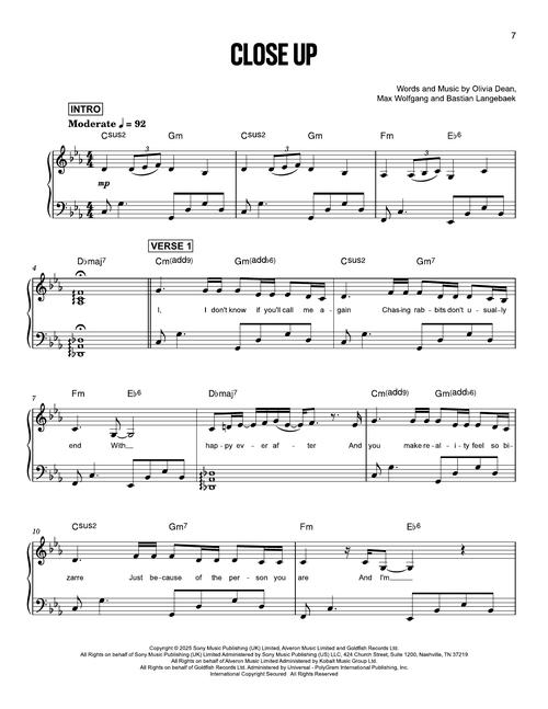 Celebrate the songs from the newly crowned Best New Artist at the 2026 Grammy Awards with the official songbook for Olivia Dean: The Art of Loving. Beautifully arranged for intermediate-level piano with lyrics and chord symbols, the collection includes all 11 album tracks, from the tender balladry of “So Easy (To Fall in Love)” to the soulful lyricism of “A Couple Minutes,” Whether you're a fan of her chart-topping singles or a pianist seeking expressive arrangements, this folio brings the artistry of The Art of Loving to life at your fingertips.
