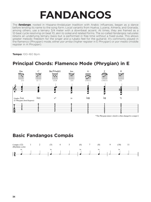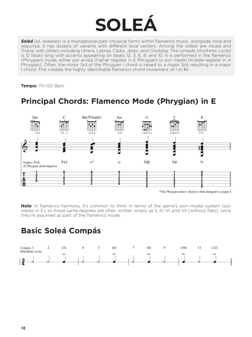 Ready to bring the sound of flamenco to your playing? This collection delivers 50 authentic pieces that introduce the ten essential palós (melodic styles) of flamenco, from deep expression of soleá to the lively energy of bulerías and rumba. Designed for elementary to intermediate guitarists, each piece builds your technique while helping you capture the rhythm, feel, and nuance that define the style. Compiled by acclaimed flamenco guitarist and educator David Leiva, each piece is presented in standard notation and TAB with detailed fingerings. A valuable resource for guitarists looking to develop a confident, authentic flamenco voice on the guitar!