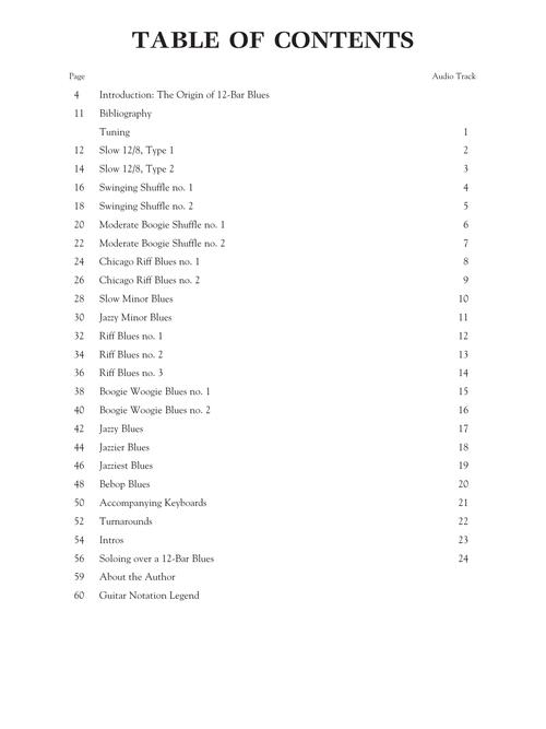 Este livro foi criado por Dave Rubin para o guitarrista aprender todos os segredos de como tocar o Blues de 12 Compassos (12 bar blues) com toda a segurança. Nos arquivos de áudio, disponíveis online, você vai conhecer tudo sobre Boogie, Shuffle, Swing, Riffs, progressões de Jazzy Blues, Chicago, Blues Menor, Bebop e outros estilos de blues, além de solos, introduções, turnarounds, e muito mais. Os exemplos estão escritos em partitura e tablatura.