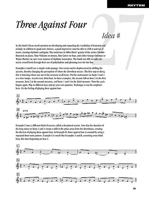 Amazing Phrasing is for any trumpet player interested in learning how to improvise and how to improve their creative phrasing. The 50 ideas are divided into three main sections: Harmony - explores scales, arpeggios, chord substitutions, harmonic embellishments, and other harmonic phrasing ideas; Rhythm - covers legato tonguing, swing feel, rhythmic displacement, how to manipulate time, and other aspects of rhythmic phrasing; Melody - discusses contour lines, making patterns musical, developing a motif, building a solo, and many other melodic phrasing ideas. The companion CD contains 26 demo tracks for listening, as well as many play-along examples so you can practice improvising over various musical styles and progressions.