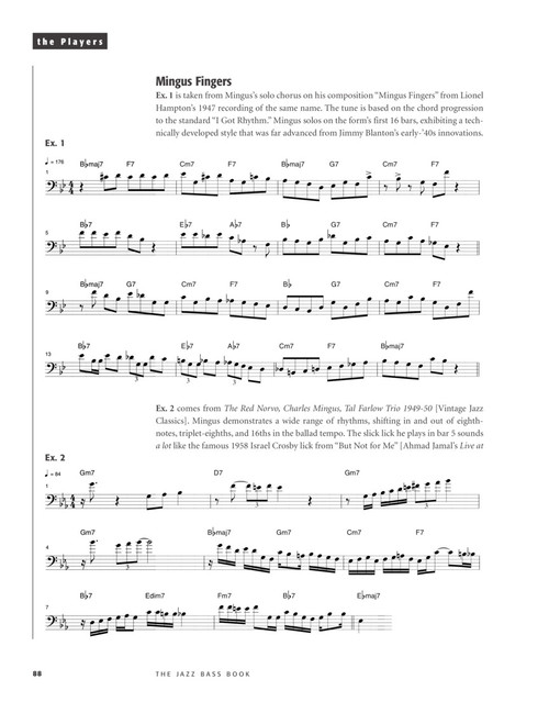 More than a player's manual, this book portrays jazz bass as a vital element of 20th century American music. Citing examples from key recordings in the jazz canon, the book defines the essence of the musical contributions made by more than 70 important jazz bassists, including Ray Brown, Eddie Gomez, Charles Mingus, Milt Hinton and many others. Bassists get expert guidance on mastering proper technique, practice methods and improvisation, plus new insight into the theoretical and conceptual aspects of jazz. The companion audio featuring bass plus rhythm section allows readers to hear technical examples from the book, presented in slow and fast versions. It also offers play-along tracks of typical chord progressions and song forms.