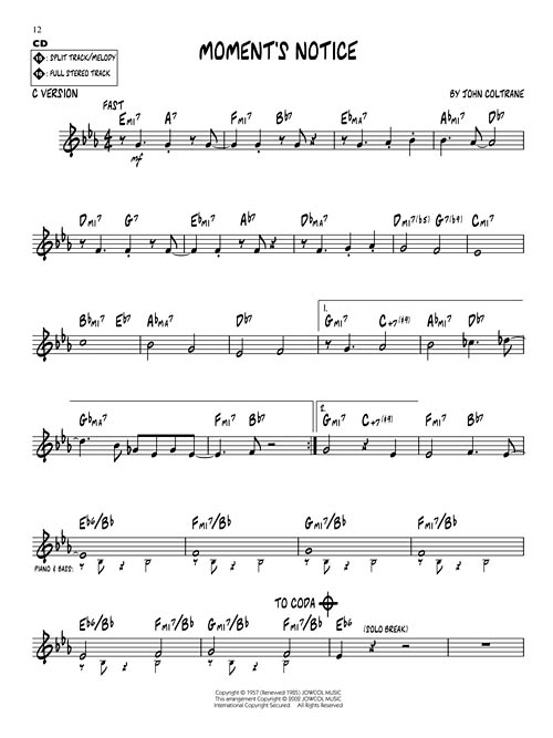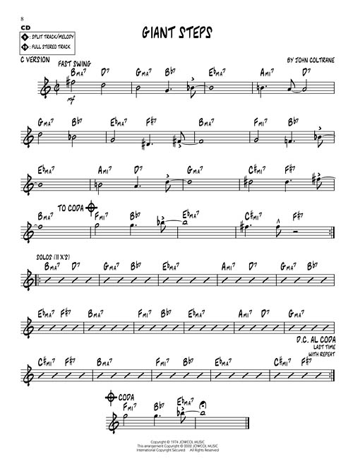 Esta série é uma excelente ferramenta de estudo para todos os músicos de Jazz. Todos os temas transcritos (melodia e acordes) para instrumentos em Bb, Eb, C e F. No CD cada tema tem duas gravações; uma faixa completa com a melodia e uma segunda faixa com o mesmo tema, porém sem a melodia, somente o play-back para que você possa tocar junto. Você ainda pode eliminar o Baixo ou o Piano usando o "balanço" do seu equipamento de som. "Chorus" adicionais para improvisação. Incluindo: Blue Train (Blue Trane) • Countdown • Cousin Mary • Equinox • Giant Steps • Impressions • Lazy Bird • Mr. P.C. • Moment's Notice • Naima (Neima).