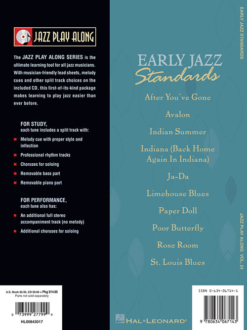 Esta série é uma excelente ferramenta de estudo para todos os músicos de Jazz. Todos os temas transcritos (melodia e acordes) para instrumentos em Bb, Eb, C e F. No CD cada tema tem duas gravações; uma faixa completa com a melodia e uma segunda faixa com o mesmo tema, porém sem a melodia, somente o play-back para que você possa tocar junto. Você ainda pode eliminar o Baixo ou o Piano usando o "balanço" do seu equipamento de som. "Chorus" adicionais para improvisação. Incluindo: After You've Gone • Avalon • Indian Summer • Indiana (Back Home Again in Indiana) • Ja-Da • Limehouse Blues • Paper Doll • Poor Butterfly • Rose Room • St. Louis Blues.