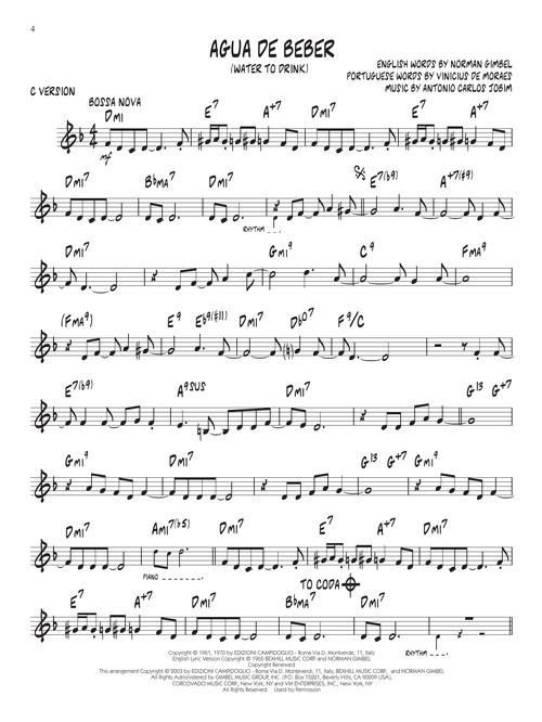 Esta série é uma excelente ferramenta de estudo para todos os músicos de Jazz. Todos os temas transcritos (melodia e acordes) para instrumentos em Bb, Eb, C e F. No áudio cada tema tem duas gravações; uma faixa completa com a melodia e uma segunda faixa com o mesmo tema, porém sem a melodia, somente o play-back para que você possa tocar junto. "Chorus" adicionais para improvisação. Incluindo: Água De Beber (Water to Drink) • Chega De Saudade (No More Blues) • The Gift! (Recado Bossa Nova) • Invitation • Manhã De Carnaval (A Day in the Life of a Fool) • Mas Que Nada • Ran Kan Kan • So Nice (Summer Samba) • Sweet Happy Life (Samba de Orpheo) • Watch What Happens.