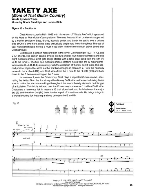 Learn the trademark riffs and licks behind one of the most influential recording artists of all time and one of the founders of the Nashville sound. This book/audio online pack features analysis and lessons for 12 Atkins hits along with a audio online featuring full demos.