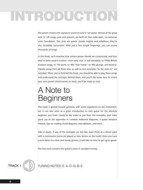 Aprendendo apenas alguns desenhos de power chords, você poderá tocar centenas de músicas, desde death metal, passando por rockabilly e grunge. Este livro mostra progressões de músicas conhecidas de artistas como Alice in Chains, Weezer entre outros; fotos e diagramas dos principais power chords; riffs e estilos; afinações alternativas e muito mais! Inclui partitura e tablatura. As faixas de áudio estão disponíveis online para download ou streaming, juntamente com um player digital multifuncional (Playback+), que permite alterar o andamento sem alterar o tom, definir pontos específicos para tocar (loop), alterar o tom, além de balanço direita/esquerda.