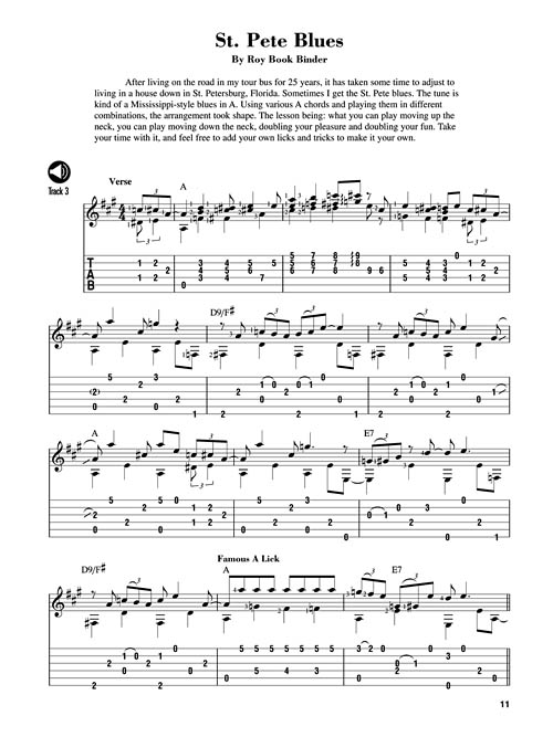 Um veterano experiente com um som único, Roy Book Binder vem cantando, tocando violão e fazendo músicas desde os anos 60. Este livro apresenta temas de blues tradicionais e originais que deleitaram o público por anos. Possui excelentes lições e uma introdução de Roy, transcrições nota para nota com partituras e tablaturas e acesso a arquivos de áudio online de exemplos gravados para tornar a aprendizagem mais fácil. As faixas de áudio estão disponíveis online, juntamente com um player digital multifuncional (Playback+), que permite alterar o andamento sem alterar o tom, definir pontos específicos para tocar (loop), alterar o tom, além de balanço direita/esquerda.