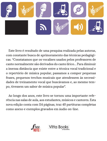 Este livro é resultado de uma pesquisa realizada pelas autoras, com constante busca de aprimoramento das técnicas pedagógicas. "Constatamos que os vocalises usados pelos professores de canto normalmente são derivados do canto lírico... Para diminuir a imensa distância que existe entre a técnica vocal tradicional e o repertório de música popular, passamos a compor pequenas frases, pequenos trechos musicais que atendessem às necessidades de treinamento vocal que buscávamos, e ao mesmo tempo tivessem um sabor de música popular."