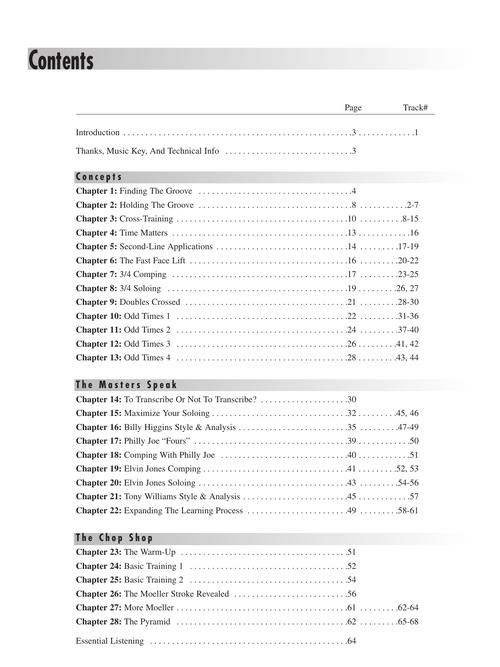 O famoso baterista e educador John Riley criou um trabalho profundo para estudantes sérios do instrumento. Tópicos conceituais (tempo, acompanhamento, solos), estilo e análise de artistas (Elvin Jones, Tony Williams e outros) e técnica (Aquecimento, Moeller, etc.) se juntam de uma maneira nova, educativa e inspiradora. Destinado a se tornar uma importante adição ao currículo. O CD apresenta Riley executando vários dos exemplos.