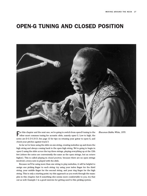 David Hamburger, guitarrista e professor, traz neste livro uma introdução completa ao bottleneck slide guitar através de lições progressivas de afinações abertas, técnicas de fingerstyle, dicas de slide guitar, exercícios de técnica, músicas completas e dicas sobre equipamentos. Os exemplos estão em partitura e tablatura. Além do mais, faixas de audio, disponíveis online, traz os exemplos em velocidade normal e mais lenta, facilitando o aprendizado.