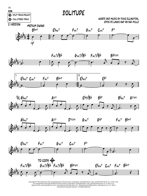 Esta série é uma excelente ferramenta de estudo para todos os músicos de Jazz. Todos os temas transcritos (melodia e acordes) para instrumentos em Bb, Eb, C e F. No CD cada tema tem duas gravações; uma faixa completa com a melodia e uma segunda faixa com o mesmo tema, porém sem a melodia, somente o play-back para que você possa tocar junto. Você ainda pode eliminar o Baixo ou o Piano usando o "balanço" do seu equipamento de som. "Chorus" adicionais para improvisação. Incluindo: C-Jam Blues • Come Sunday • Cotton Tail • Do Nothin' Till You Hear from Me • I Got It Bad and That Ain't Good • I Let a Song Go Out of My Heart • I'm Beginning to See the Light • I'm Just a Lucky So and So • Mood Indigo • Solitude.