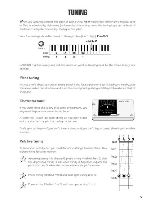 Everything you need to know about playing the bass, including music notation, tablature, riffs, licks, and scales, syncopation, and rock and blues styles. Method Book 1 includes 75 songs and examples.