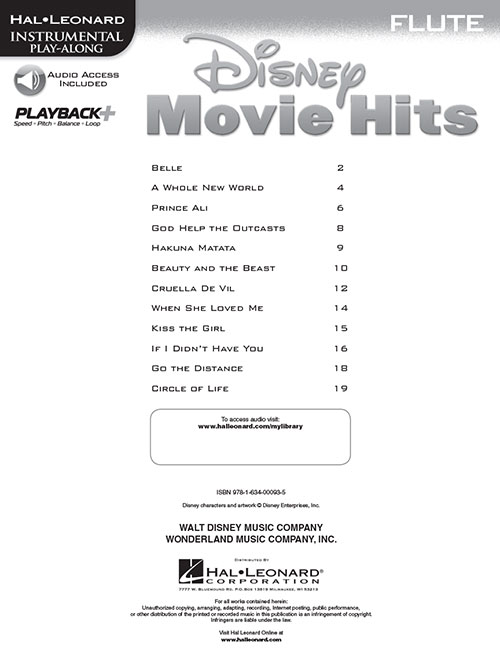 Now solo instrumentalists can play along with a dozen favorite songs from Disney blockbusters such as Beauty and the Beast, The Lion King, Monsters, Inc., Toy Story 2 and other beloved movies.
