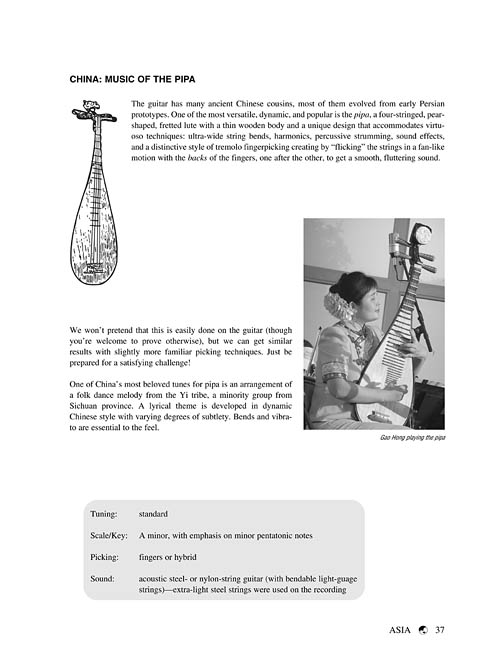 This book/CD pack provides lessons on existing guitar traditions, plus new guitar arrangements of non-guitar music from Asia and the Middle East. Learn guitar techniques and tunes from the traditions of Afro-pop and African acoustic styles, Middle Eastern oud and saz, Indian veena and sitar, Chinese pipa, Japanese koto, Spanish guitar, Celtic folk, Andean folk, Brazilian jazz, Mexican Mariachi, and Hawaiian slack-key guitar. The CD includes demos of all the exercises, including slowed-down versions for practice.