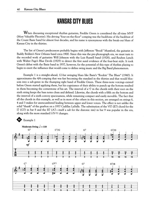Este método explora 0 shuffle, boogie e swing ritmos para guitarra. Escrito na partitura e tablatura e abrange Delta, Country, Chicago, Kansas City, Texas, Nova Orleans, West Coast e bebop blues. Também inclui áudio para demonstração de cada estilo e para tocar junto. As faixas de áudio estão disponíveis online, juntamente com um player digital multifuncional (Playback+), que permite alterar o andamento sem alterar o tom, definir pontos específicos para tocar (loop), alterar o tom, além de balanço direita/esquerda.