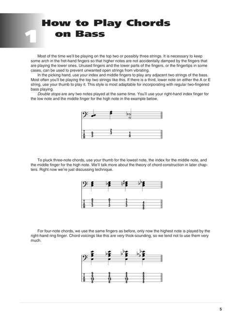 Explore new sounds on the bass that you may never have considered! Learning to play chords will enhance your ability to hear chord progressions and qualities, improve your composition and arranging skills, and strengthen your soloing chops and overall musicianship. Covers: double stops, major & minor triads, diminished and augmented triads, seventh chords, chordal song arrangements, different styles, a chord glossary and more. The accompanying audio features 76 demo tracks of all the exercises in the book.