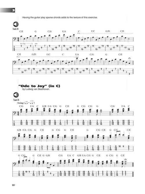 Explore novos sons no baixo que você pode nunca ter considerado! Aprender a tocar acordes aumentará sua capacidade de ouvir progressões e avaliar a qualidade dos acordes, melhorar sua composição e habilidades de arranjos e fortalecer sua capacidade de solos e sua musicalidade geral. Double stops, tríades maiores e menores, tríades diminutas e aumentadas, acordes com sétima, estilos diferentes, um glossário de acordes e muito mais. Os recursos de áudio acompanham 76 trilhas de demonstrações de todos os exercícios do livro. As faixas de áudio estão disponíveis online, juntamente com um player digital multifuncional (Playback+), que permite alterar o andamento sem alterar o tom, definir pontos específicos para tocar (loop), alterar o tom, além de balanço direita/esquerda.