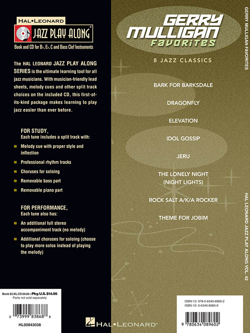 Esta série é uma excelente ferramenta de estudo para todos os músicos de Jazz. Todos os temas transcritos (melodia e acordes) para instrumentos em Bb, Eb, C e F. No CD cada tema tem duas gravações; uma faixa completa com a melodia e uma segunda faixa com o mesmo tema, porém sem a melodia, somente o play-back para que você possa tocar junto. Você ainda pode eliminar o Baixo ou o Piano usando o "balanço" do seu equipamento de som. "Chorus" adicionais para improvisação. Incluindo: Bark for Barksdale • Dragonfly • Elevation • Idol Gossip • Jeru • The Lonely Night (Night Lights) • Rock Salt a/k/a Rocker • Theme for Jobim.