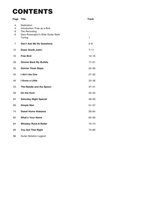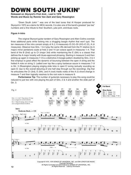 Explore the Southern rock mastery of Skynyrd's multiple guitar assault featuring Gary Rossington, Allen Collins, Ed King and Steve Gaines. Dave Rubin breaks down the licks from 15 tunes: Don't Ask Me No Questions • Free Bird • Gimme Three Steps • Saturday Night Special • Sweet Home Alabama • What's Your Name • more.