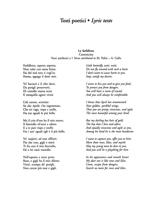 Includes 2 CDs of piano accompaniments and native speaker Italian diction lessons. 15 songs including: La farfalletta • Quando incise su quel marmo • Sogno d'infanzia • L'abbandono • L'allegro marinaro • Torna, vezzosa Fillide • Tre ariette • Sei arietta, and more.