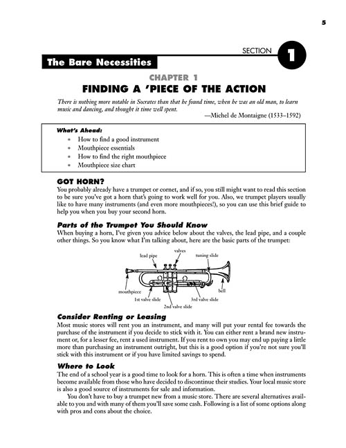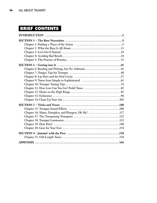If you wish there were a fun and engaging way to motivate you in your trumpet-playing quest, then you've found it - All About Trumpet is for you! Whether you want to learn about reading music, playing in a band, finding the right instrument, or all of the above, this enjoyable guide will help you finally start playing your favorite songs in many different styles. Includes interesting tidbits on trumpet gear, care and maintenance, and other fun stuff about the trumpet. The CD contains song demos and practice exercises. Features hits from the Beatles; Blood, Sweat & Tears; Miles Davis; Tito Puente; Coldplay; J.S. Bach; and more!