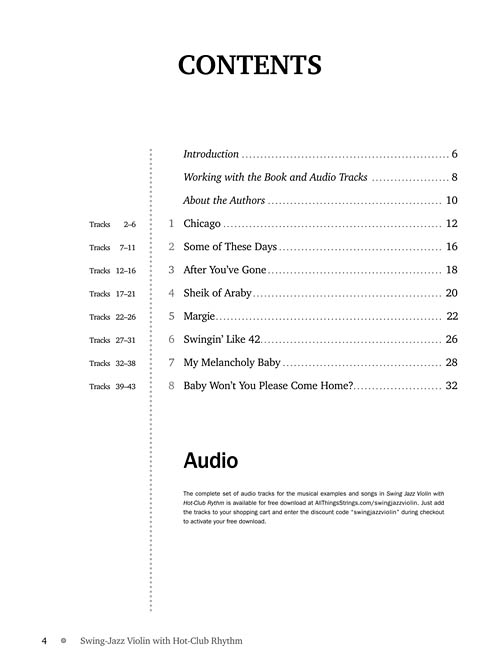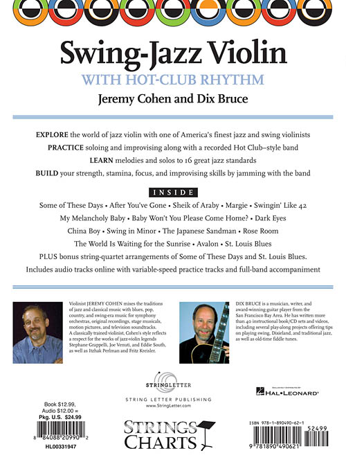 Explore o mundo do violino no jazz com um dos melhores violinistas de jazz e swing, Jeremy Cohen. Você pode praticar solo e improvisar junto com uma banda de estilo Hot-Club. Aprender melodias de 16 standards de jazz. Força, resistência, foco e habilidades de improvisação por interagir com a banda. Inclui áudio com faixas de prática de velocidade variável e acompanhamento.