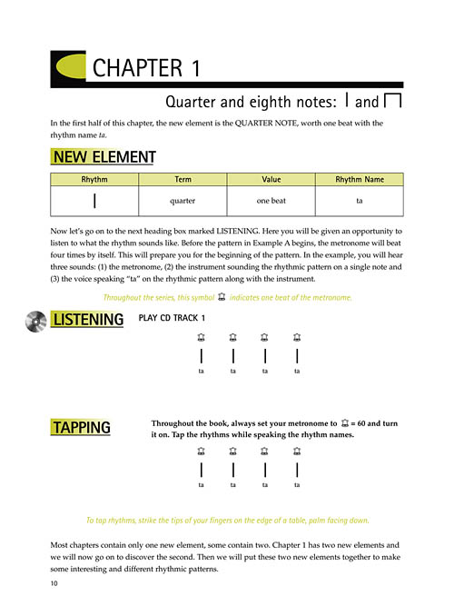 Uma nova série na Hal Leonard Student Piano Library, Rhythm Without the Blues é um programa inovador que visa construir uma compreensão clara do ritmo e a capacidade de executá-lo com precisão. Este método passo a passo oferece demonstrações, percepção, oportunidades de desempenho e ditados rítmicos para ajudar os alunos em qualquer instrumento a reforçar e aprimorar suas habilidades rítmicas. O CD que acompanha apresenta mais de 90 exercícios, gravados por instrumentos reais, para auxiliar nesses objetivos e tornar o processo de aprendizado agradável