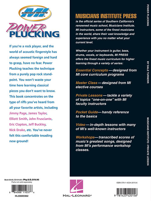 If you're a rock player and the world of acoustic fingerstyle has always seemed foreign and hard to grasp, have no fear. Power Plucking teaches the technique from a purely pop-rock standpoint. You won't waste your time here learning classical pieces you don't want to know. This book concentrates on the type of riffs you've heard from all your favorite artists, including Jimmy Page, James Taylor, Elliott Smith, John Frusciante, Eric Clapton, Jeff Buckley, Nick Drake, etc. You've never felt this comfortable treading new ground!