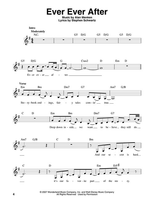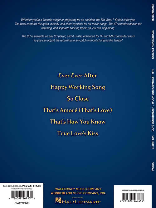 Esta edição é indicada tanto para cantores amadores como para profissionais. Inclui as letras, melodias e as cifras. Acompanha um CD com as músicas completas e com o acompanhamento para que você possa cantar. Você ainda poderá utilizar o CD no PC ou MAC para alterar o andamento da música sem alterar o pitch, incluindo: Ever Ever After • Happy Working Song • So Close • That's Amoré (That's Love) • That's How You Know • True Love's Kiss.