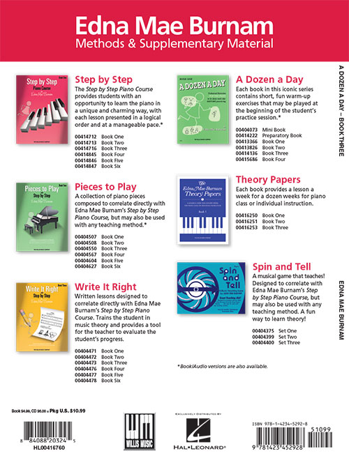 Each book in this series contains short warm-up exercises to be played at the beginning of the student's practice session. Performing these technical exercises will help develop strong hands and flexible fingers.