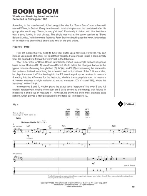Explore toda a técnica de John Lee Hooker. Inclui análise por Dave Rubin de diversas músicas, incluindo: Blues Before Sunrise • Boogie Chillen No. 2 • Boom Boom • Bottle Up and Go • Catfish Blues • Dimples • Hoogie Boogie • It Serves Me Right to Suffer • Mama, You Got a Daughter • Moaning Blues • One Bourbon, One Scotch, One Beer • This Is Hip (This Is It) • Tupelo (Tupelo Blues) • Wednesday Evening Blues.