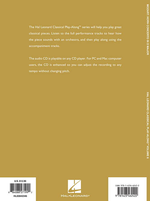 The Hal Leonard Classical Play-Along series will help you play great classical pieces. Listen to the full performance tracks to hear how the piece sounds with an orchestra, and then play along using the accompaniment tracks. The audio CD is playable on any CD player. For PC and Mac computer users, the CD is enhanced so you can adjust the recording to any tempo without changing pitch.