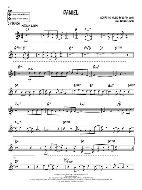 Esta série é uma excelente ferramenta de estudo para todos os músicos de Jazz. Todos os temas transcritos (melodia e acordes) para instrumentos em Bb, Eb, C e F. No CD cada tema tem duas gravações; uma faixa completa com a melodia e uma segunda faixa com o mesmo tema, porém sem a melodia, somente o play-back para que você possa tocar junto. Você ainda pode eliminar o Baixo ou o Piano usando o "balanço" do seu equipamento de som. "Chorus" adicionais para improvisação. Incluindo: Bennie and the Jets • Candle in the Wind • Crocodile Rock • Daniel • Don't Let the Sun Go down on Me • Goodbye Yellow Brick Road • Honky Cat • I Guess That's Why They Call It the Blues • Rocket Man (I Think It's Gonna Be a Long Long Time) • Your Song.