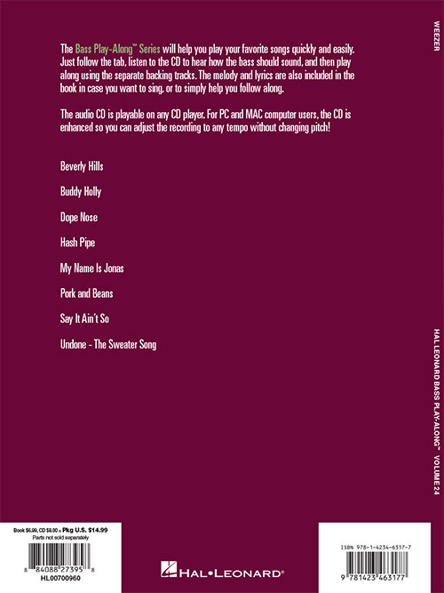 The Bass Play-Along Series vai ajudá-lo a tocar suas músicas favoritas, rápida e facilmente! Acompanhe pela tablatura e ouça o CD para entender o som do baixo e toque usando os canais separados. As melodias e as letras estão incluídas para que você possa cantá-las ou simplesmente acompanhar; incluindo: Beverly Hills • Buddy Holly • Dope Nose • Hash Pipe • My Name Is Jonas • Pork and Beans • Say It Ain't So • Undone - The Sweater Song.