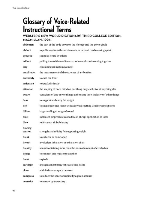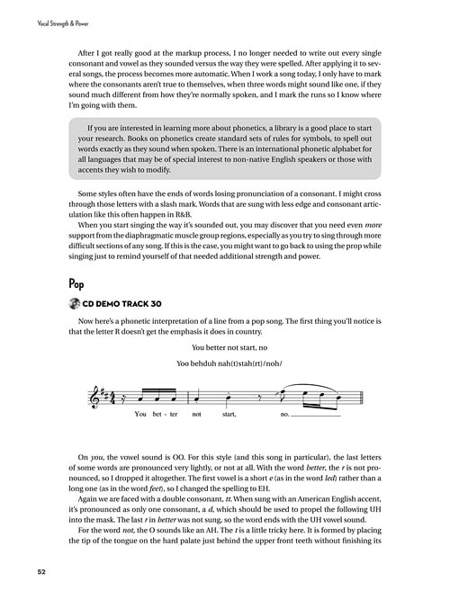 Based on years of teaching and research, this book with included online audio by acclaimed vocal coach Dena Murray provides insightful methods and exercises for attaining vocal mastery. Perfect for all singers – beginners to pros – who want more power in their voice, better pitch control, and a bigger singing range. With her prior two books, this volume forms a complete set of exercises to bring the voice to its full potential. The audio is accessed online using the unique code inside each book and can be streamed or downloaded. The audio files include PLAYBACK+, a multi-functional audio player that allows you to slow down audio without changing pitch, set loop points, change keys, and pan left or right.