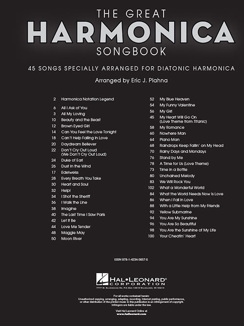 The songbook no harmonica player should be without! Features 45 pop, rock, Broadway, movie hits and standards.