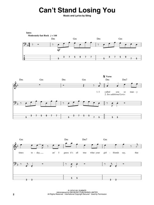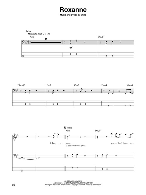 The Bass Play-Along Series vai ajudá-lo a tocar suas músicas favoritas, rápida e facilmente! Acompanhe pela tablatura e ouça o CD para entender o som do baixo e toque usando os canais separados. As melodias e as letras estão incluídas para que você possa cantá-las ou simplesmente acompanhar; incluindo: Can't Stand Losing You • De Do Do Do, De Da Da Da • Every Breath You Take • Every Little Thing She Does Is Magic • Roxanne • Spirits in the Material World • Synchronicity II • Walking on the Moon.