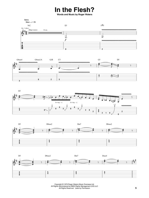 Transcrições para guitarra; incluindo: In the Flesh? • The Thin Ice • Another Brick in the Wall (Part I) • The Happiest Days of Our Lives • Another Brick in the Wall (Part II) • Mother • Goodbye Blue Sky • Empty Spaces (What Shall We Do Now?) • Young Lust • One of My Turns • Don't Leave Me Now • Another Brick in the Wall (Part 3) • Goodbye Cruel World • Hey You • Is There Anybody Out There? • Nobody Home • Vera • Bring the Boys Back Home • Comfortably Numb • The Show Must Go On • In the Flesh • Run Like Hell • Waiting for the Worms • Stop • The Trial • Outside the Wall.