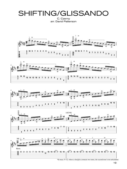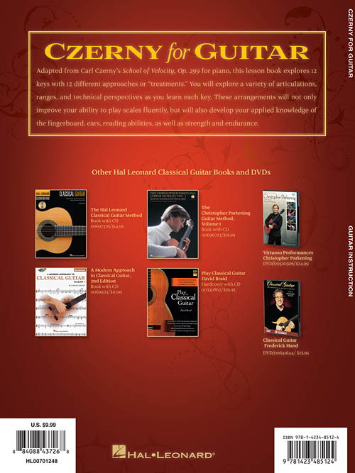 Adapted from Carl Czerny's School of Velocity, Op. 299 for piano, this lesson book explores 12 keys with 12 different approaches or "treatments." You will explore a variety of articulations, ranges and technical perspectives as you learn each key. These arrangements will not only improve your ability to play scales fluently, but will also develop your ears, knowledge of the fingerboard, reading abilities, strength and endurance. In standard notation and tablature
